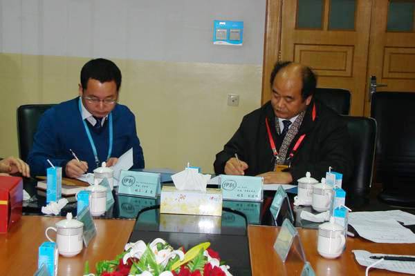 副院長(zhǎng)劉建林與王亮總經(jīng)理簽訂商洛學(xué)院校外實(shí)踐教學(xué)基地協(xié)議書(shū)