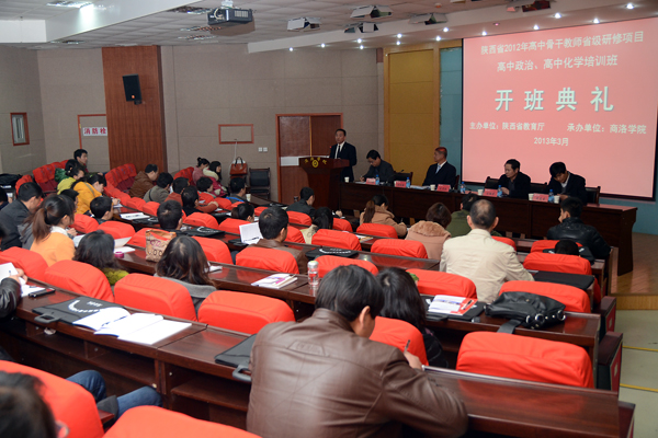 3月3日下午,我院承擔(dān)的陜西省2012年高中骨干教師省級研修項目高中政治、高中化學(xué)培訓(xùn)班舉辦了開班典禮。這標(biāo)志著我院2012年省級培訓(xùn)項目實施工作已全面展開。院紀(jì)委書記、學(xué)院“國培計劃”和省級培訓(xùn)項目領(lǐng)導(dǎo)小組副組長王思懷,院黨委委員、教務(wù)處處長、學(xué)院“國培計劃”和省級培訓(xùn)項目領(lǐng)導(dǎo)小組成員劉端森,各項目首席專家以及來自全省各地市的100名參訓(xùn)教師參加了開班典禮。