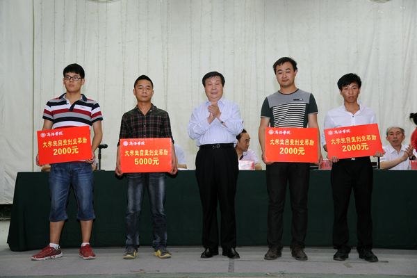 張景書在講話中向受表彰、受資助學生,并通過他們向全體在校學生提出了四點希望:一是希望同學們立志高遠,樹立堅定理想信念,及早確立努力學習、不斷超越自我的奮斗目標,早日實現(xiàn)美好的理想;二是希望同學們抓住大學幾年的機會,在??炭鄬W習,練就服務祖國、報效祖國的本領,把自己塑造成為國家建設需要的應用型人才,為實現(xiàn)中國夢貢獻自己的力量;三是希望同學們增強創(chuàng)業(yè)意識、創(chuàng)業(yè)精神,把自己塑造成為具有創(chuàng)新思維和創(chuàng)業(yè)能力的高素質創(chuàng)新型人才,通過創(chuàng)新創(chuàng)業(yè)服務創(chuàng)新型國家建設,實現(xiàn)自身價值;四是希望同學們以身邊的優(yōu)秀學生為榜樣,學習先進,錘煉高尚品格,積極倡導社會文明新風,積極參加志愿服務,主動承擔社會責任,為學校發(fā)展和社會進步再立新功。