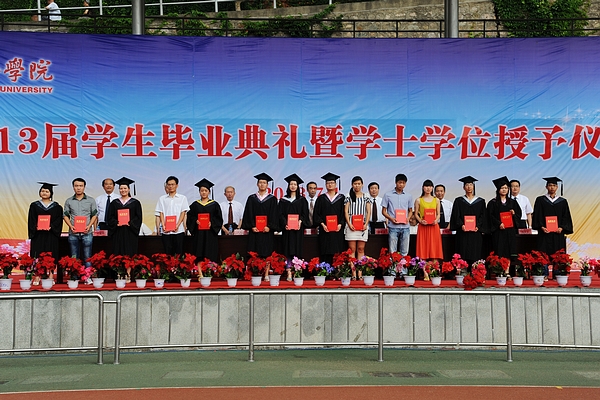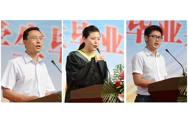生物醫(yī)藥工程系王學軍博士代表教師發(fā)言。城鄉(xiāng)發(fā)展與管理工程系2009級學生魏水青作為畢業(yè)生代表發(fā)言。中文系2011級學生溫健偉代表在校生發(fā)言。畢業(yè)典禮在校歌《正道直行做棟梁》的歌聲中圓滿結(jié)束。嘹亮的歌聲回蕩在菁菁校園,激勵全體畢業(yè)生“博聞強識展宏圖,正道直行做棟梁,賢俊建功業(yè),榮校興國邦”。