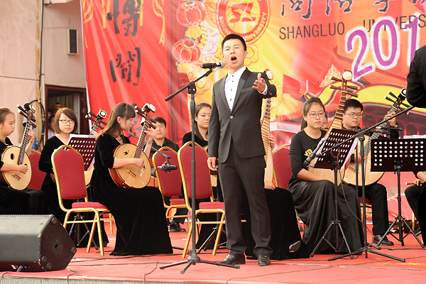 演出在西安音樂學(xué)院師生表演的民樂合奏《彩云追月》、《賽馬》、《射雕英雄傳》中拉開了序幕。小提琴獨(dú)奏《梁?!愤x段婉轉(zhuǎn)的旋律、精彩的表演贏得陣陣掌聲;李淼曾在商洛舉辦的首次大型交響樂演唱會(huì)“永遠(yuǎn)跟黨走”上唱響的《秦嶺最美是商洛》,展示了商洛優(yōu)美的自然環(huán)境和淳樸的風(fēng)土人情;學(xué)院工會(huì)組織女教工表演了《健身秧歌》,以優(yōu)美的舞姿向全院師生展現(xiàn)了積極向上的生活態(tài)度;生物醫(yī)藥工程系學(xué)生表演的舞蹈《動(dòng)感青春》展現(xiàn)了同學(xué)們蓬勃的朝氣;藝術(shù)系師生帶來的歌舞演奏節(jié)目充分展現(xiàn)了老師們精湛的技藝、藝術(shù)學(xué)子們的多才多藝;合唱《商洛學(xué)院校歌》、《歌唱祖國(guó)》唱出了我校師生熱愛學(xué)校、熱愛祖國(guó)的心聲。