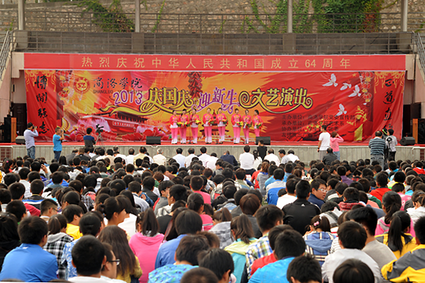 為慶祝新中國(guó)第64個(gè)生日,迎接2013級(jí)新生,9月26日下午,我校舉辦了“2013慶國(guó)慶·迎新生”大型文藝演出。西安音樂學(xué)院70余名師生應(yīng)邀友情出演,和我校師生、商洛劇團(tuán)青年歌手李淼輪番登臺(tái)獻(xiàn)藝,表演了民樂合奏、歌伴舞、獨(dú)唱、舞蹈、健身秧歌等19個(gè)節(jié)目。熱烈祥和的氣氛、清新高雅的藝術(shù)為校園帶來了節(jié)日的歡樂和文化的盛宴。