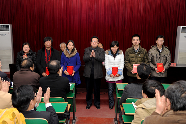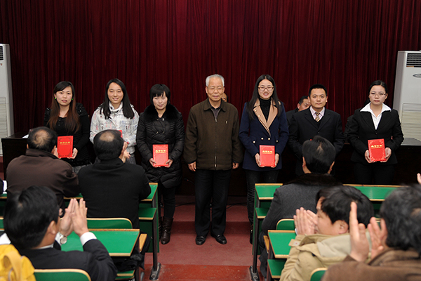 在熱烈的掌聲中,劉建林、王思懷、陳永莊、魏書堂分別為2013年度校級(jí)優(yōu)秀教案及優(yōu)秀電子課件獲獎(jiǎng)?wù)摺?yōu)秀實(shí)習(xí)帶隊(duì)教師、教學(xué)技能競(jìng)賽優(yōu)勝者、校級(jí)教學(xué)成果獎(jiǎng)獲得者、校級(jí)本科教學(xué)工程精品課程和雙語教學(xué)示范課負(fù)責(zé)人、校級(jí)教學(xué)名師、省級(jí)科學(xué)成果二等獎(jiǎng)獲得者頒獎(jiǎng);為省級(jí)本科教學(xué)工程項(xiàng)目授牌。副院長(zhǎng)魏書堂宣讀了表彰決定。