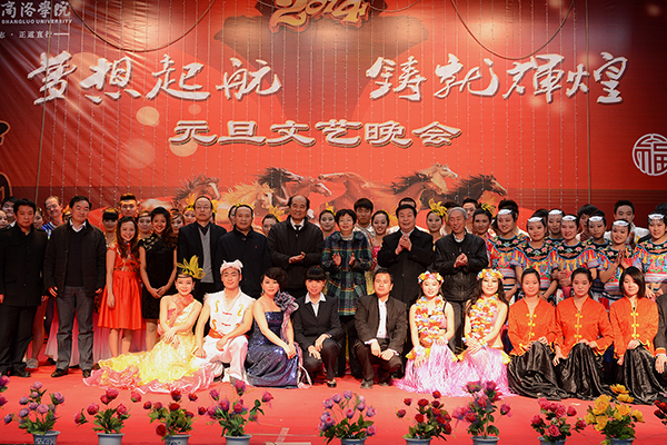 辭年喜飲三蛇酒,賀歲爭(zhēng)描八駿圖。12月30日晚,我校舉辦2014年元旦文藝晚會(huì)。校黨委書記張景書,院長(zhǎng)劉建林,黨委副書記左曉民,紀(jì)委書記王思懷,副院長(zhǎng)陳永莊、魏書堂及各系(部)負(fù)責(zé)人同師生們一同觀看演出。商洛市副市長(zhǎng)劉榮賢,商洛市委宣傳部網(wǎng)信辦主任趙嘉安,共青團(tuán)商洛市委副書記劉鵬,商洛市供電局黨委書記陳飛,商洛市郵政局副局長(zhǎng)張勛,中國(guó)聯(lián)通商洛分公司副總經(jīng)理陳安民等政府機(jī)關(guān)、企事業(yè)單位領(lǐng)導(dǎo)和社會(huì)各界人士應(yīng)邀來到晚會(huì)現(xiàn)場(chǎng),與我校師生共慶佳節(jié)。