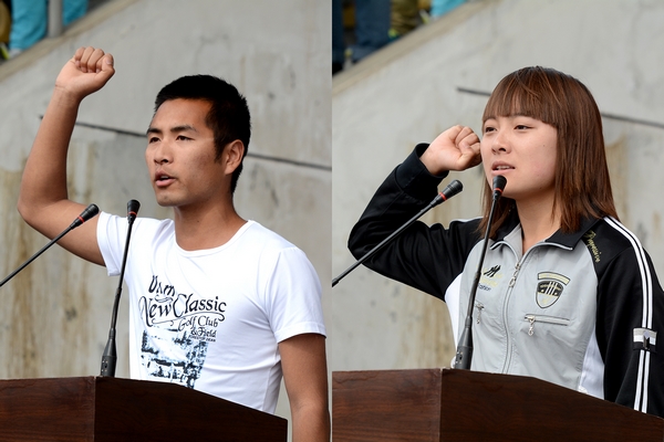運(yùn)動員代表劉曉瑩、裁判員代表洪福祥,分別代表全體運(yùn)動員、裁判員宣誓。