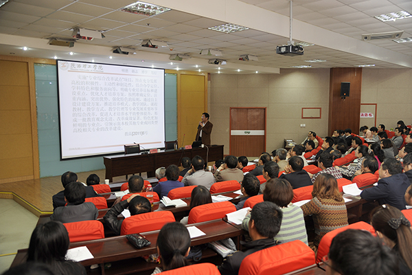 校領(lǐng)導(dǎo)張景書、左曉民、王思懷、魏書堂,各二級學(xué)院負(fù)責(zé)人、教學(xué)機(jī)構(gòu)負(fù)責(zé)人,全校副高職稱及以上人員聽取了報告。報告會由黨委副書記左曉民主持。