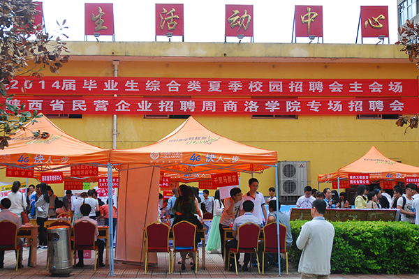 為搭建畢業(yè)生與用人單位的雙向選擇平臺,進一步促進高校畢業(yè)生充分就業(yè),5月24日,由陜西省人社廳、教育廳、總工會和工商聯(lián)主辦,我校承辦的陜西省2014年民營企業(yè)招聘周商洛專場暨2014屆畢業(yè)生夏季校園招聘會在我校舉行。260余家招聘單位,省內(nèi)各高校應(yīng)往屆畢業(yè)生2000多人參加了招聘會。