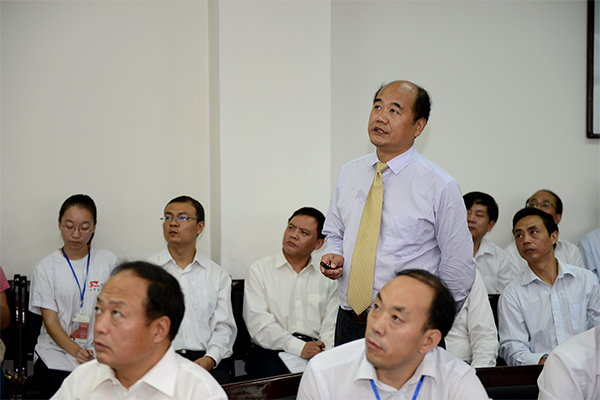 校長(zhǎng)劉建林做了學(xué)校自查情況說(shuō)明,從學(xué)?;厩闆r、師資隊(duì)伍建設(shè)、學(xué)科專(zhuān)業(yè)設(shè)置、教育教學(xué)工作、服務(wù)地方以及存在的問(wèn)題和困難等方面作了全面匯報(bào)。