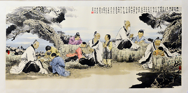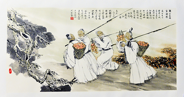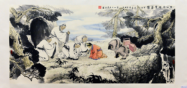 本次畫展共展出以王家民家鄉(xiāng)商山洛水風(fēng)光景致以及歷史故事為題材的書畫作品70幅。其精品力作展示出了商洛山水之美和商山洛水特有的靈秀之氣,尤其是其商山四皓系列畫,通過生動(dòng)具體的故事內(nèi)容、生活情景和人物形象把遙遠(yuǎn)而模糊的故事生動(dòng)地再現(xiàn)出來(lái),詮釋著“從歷史走向未來(lái),從延續(xù)民族文化血脈中開拓前進(jìn)”的精神內(nèi)涵,具有深厚的文化底蘊(yùn)。