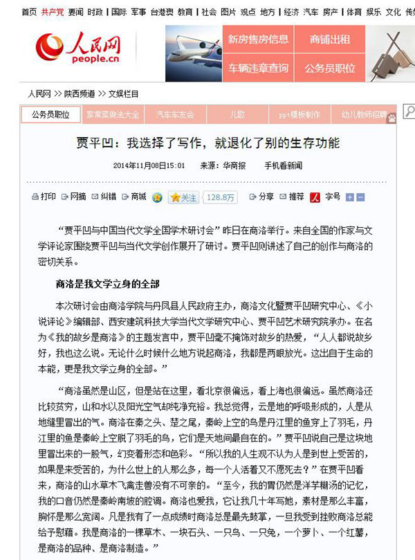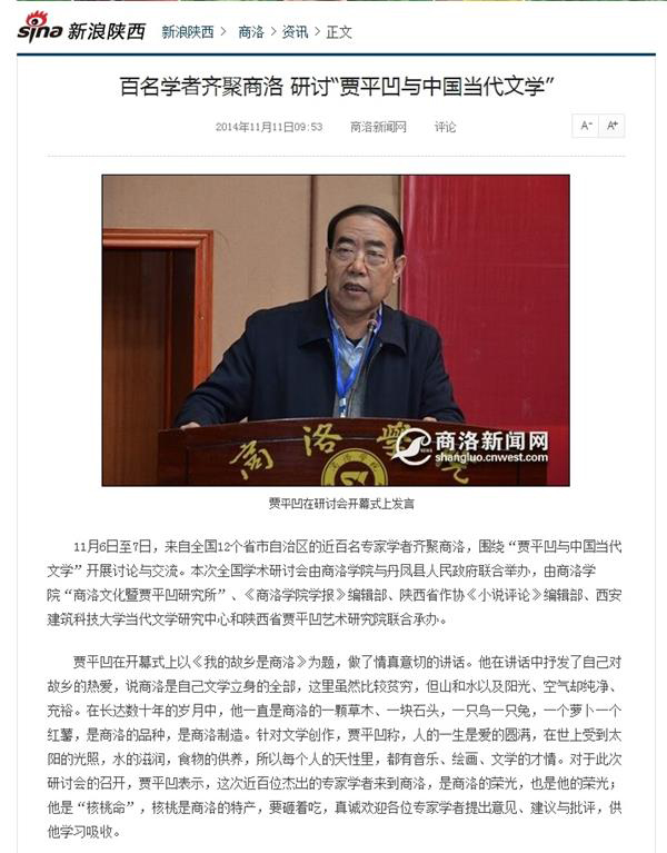 三秦網(wǎng):《近百學(xué)者商洛研討“賈平凹與中國(guó)當(dāng)代文學(xué)”》