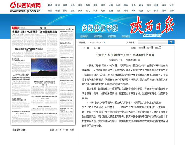 陜西日?qǐng)?bào):《“賈平凹與中國(guó)當(dāng)代文學(xué)”學(xué)術(shù)研討會(huì)召開》