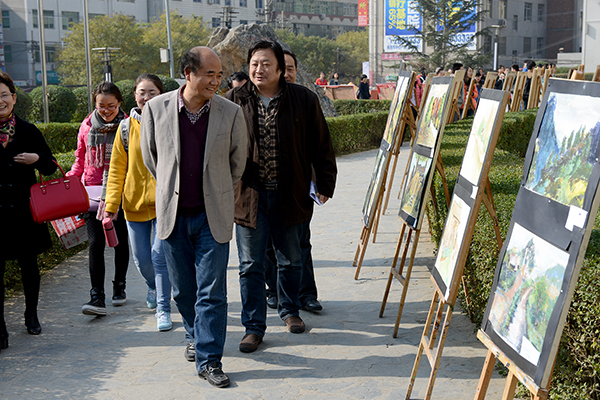 在洛南寫生活動期間,師生參觀了“墨韻華陽寫生展”,與諸多畫家交流學(xué)習(xí),通過觀摩,開闊眼界,吸取營養(yǎng)。