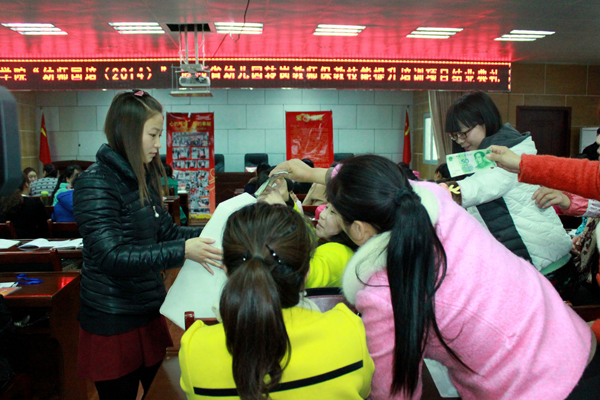 11月27日,我?!坝讕焽啵?014)”——陜西省幼兒園轉(zhuǎn)崗教師保教技能提升培訓項目正在舉辦結(jié)業(yè)典禮,在得知王珍琪老師的患病消息后,學員們自發(fā)在結(jié)業(yè)典禮上進行捐款,踴躍捐款的場景十分感人,短短幾十分鐘內(nèi)共籌集善款3338.7元。