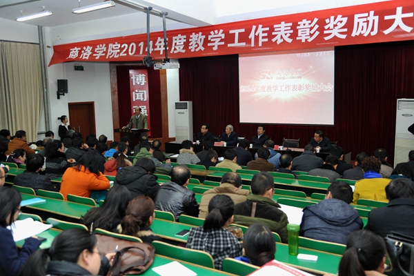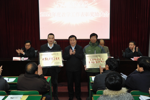 在熱烈的掌聲中,黨委書記張景書為省級本科教學(xué)工程項目授牌,校長劉建林、黨委副書記左曉民、紀(jì)委書記王思懷分別為2014年度教學(xué)技能競賽優(yōu)勝者、校級本科教學(xué)工程精品課程、校級教學(xué)名師、校級雙語教學(xué)示范課程、優(yōu)秀實習(xí)帶隊教師、優(yōu)秀教案及優(yōu)秀電子課件獲獎?wù)哳C發(fā)榮譽證書。左曉民宣讀了表彰決定。