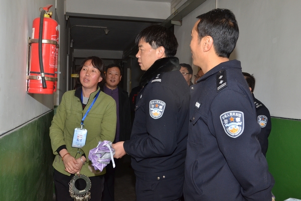 陜西省公安廳經(jīng)文??傟爮埲f文,商洛市公安局經(jīng)文保支隊隊長屈亞龍、教導(dǎo)員王斌,商州區(qū)公安分局副局長盧正林、城關(guān)派出所教導(dǎo)員楊鵬及我校保衛(wèi)處、后勤保障處相關(guān)負(fù)責(zé)人陪同檢查。