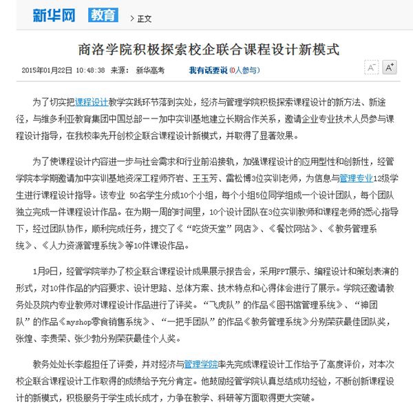 商洛學(xué)院積極探索校企聯(lián)合課程設(shè)計(jì)新模式-教育頻道-新華網(wǎng)