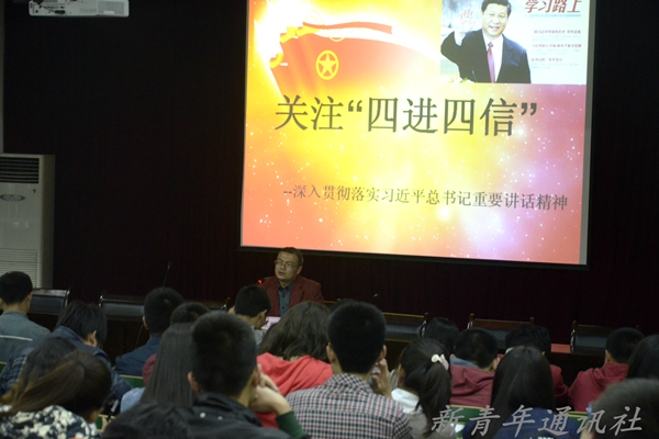 4月15日晚,校團(tuán)委組織各學(xué)生組織干部召開學(xué)習(xí)習(xí)近平總書記系列重要講話精神“四進(jìn)四信”活動座談會。校團(tuán)委副書記彭曉邦為廣大學(xué)生干部作了專題報(bào)告。