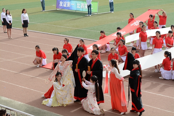 開幕式上,由西安理工大學(xué)、我校電子信息與電氣工程學(xué)院和城鄉(xiāng)規(guī)劃與建筑工程學(xué)院組成的航模隊(duì)以精彩的航模飛行表演拉開了本次大型文體表演的序幕,飛機(jī)模型帶著“預(yù)祝運(yùn)動(dòng)會(huì)圓滿成功”的祝福橫幅飛上藍(lán)天;生物醫(yī)藥與食品工程學(xué)院的團(tuán)體操《環(huán)舞青春,再創(chuàng)輝煌》激情四射,活力十足,擺出“2006”和“2015”的字樣,分別表示我校2006年專升本和2015年迎接教育部本科教學(xué)工作合格評(píng)估的兩個(gè)重要轉(zhuǎn)折點(diǎn);人文社會(huì)科學(xué)學(xué)院的太極拳表演《舞動(dòng)太極》剛?cè)嵯酀?jì),典雅大方,凝聚了傳統(tǒng)文化的精髓;電子信息與電氣工程學(xué)院的軍體拳表演《青春風(fēng)采》動(dòng)作整齊劃一,氣勢(shì)恢弘,40人擒拿氣勢(shì)威武,充滿陽剛之氣,雙截棍表演動(dòng)如雷霆,酷炫無敵,由320人擺出院徽“義”字,寓意他們?cè)趯W(xué)業(yè)上不斷向上,勇攀高峰,像海鷗般展翅飛翔,擁抱陽光,走向明天的輝煌;化學(xué)工程與現(xiàn)代材料學(xué)院的團(tuán)體表演《揚(yáng)帆起航》青春陽光,激情飛揚(yáng),用男子漢的力量和激情為整場表演畫上了圓滿的句號(hào)。