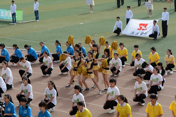 在歡快的運(yùn)動(dòng)會(huì)進(jìn)行曲中,各院和教職工代表等方隊(duì)精神飽滿,依次入場。他們昂首闊步,精神抖擻,整齊的陣容,嘹亮的口號(hào),颯爽的英姿,展示了當(dāng)代師生意氣風(fēng)發(fā)、朝氣蓬勃的青春風(fēng)采,博得了全場的陣陣掌聲。語言文化傳播學(xué)院擺出了漢字“文”的隊(duì)形,生物醫(yī)藥與食品工程學(xué)院用雙手組成“海鷗”圖形,城鄉(xiāng)規(guī)劃與建筑工程學(xué)院用五彩扇子組成“JGXY(建工學(xué)院)”、笑臉、“Go”三個(gè)圖案,其他各院也紛紛以多種多樣的形式展示了昂揚(yáng)的精神風(fēng)貌。