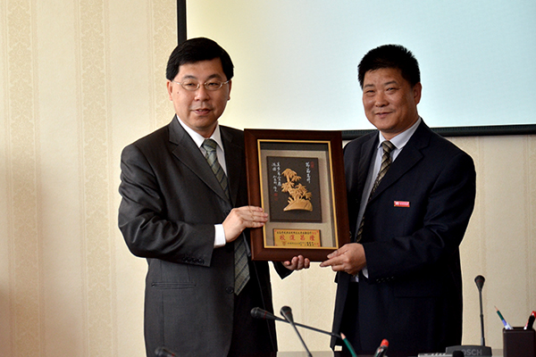 我校與臺灣南開科技大學(xué)互贈了禮品并合影留念。