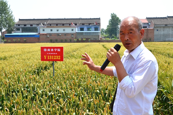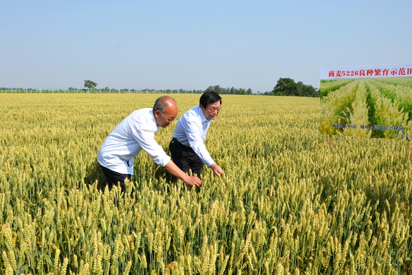 在咸陽市涇陽縣興隆鎮(zhèn),張景書深入商麥“5226”示范田,與商麥種植示范戶親切交談,觀摩了商麥的抗旱性、長勢、落黃及籽粒飽滿情況,了解了商麥“5226”在今年多雨季節(jié)的抗病情況、產(chǎn)量及推廣面積。涇陽縣現(xiàn)代種業(yè)公司經(jīng)理藏喜詳細(xì)介紹了商麥“5226”在渭北旱塬、甘肅隴南的實驗情況,并表示“商麥5226”有望成為渭北旱塬地區(qū)小麥主栽品種。