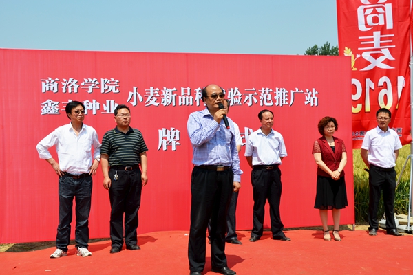 劉建林代表學(xué)校對我校周至縣小麥新品種試驗示范推廣站正式揭牌表示熱烈祝賀。劉建林指出,商洛學(xué)院近年來緊密結(jié)合當(dāng)?shù)刂鲗?dǎo)產(chǎn)業(yè),深入開展科學(xué)研究,加強(qiáng)科技成果轉(zhuǎn)化,尤其是在小麥育種方面取得了重要成果,通過周至小麥試驗站的建立,可以進(jìn)一步發(fā)揮人才、技術(shù)優(yōu)勢,加快商麥“5226”、“1619”等品種的轉(zhuǎn)化步伐,更好地支持渭北旱塬、秦巴山區(qū)及陜西周邊地區(qū)小麥品種的更新?lián)Q代,力爭取得良好的經(jīng)濟(jì)效益和社會效益,為服務(wù)“三農(nóng)”做出貢獻(xiàn)。