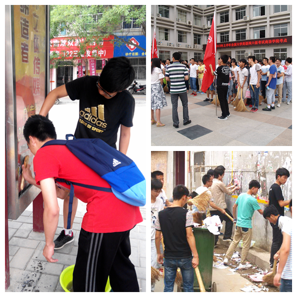 根據(jù)商洛市創(chuàng)建省級衛(wèi)生城市復(fù)審工作要求和統(tǒng)一安排,6月12日以來,我校組織化材學(xué)院、電信學(xué)院165名學(xué)生走上街頭,參加市容衛(wèi)生大掃除活動。在校領(lǐng)導(dǎo)親自指揮調(diào)度下,后勤保障處、學(xué)生處、保衛(wèi)處和相關(guān)二級學(xué)院密切配合,對市區(qū)復(fù)審辦分配我校的創(chuàng)衛(wèi)任務(wù)進(jìn)行了具體分解和安排落實。