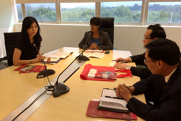 6月18日,副校長魏書堂、干部人事處處長高榮發(fā)一行應(yīng)邀赴馬來西亞吉隆坡建設(shè)大學(xué)進(jìn)行交流訪問,馬來西亞吉隆坡建設(shè)大學(xué)副校長克里斯汀教授親切會(huì)見了魏書堂等一行。