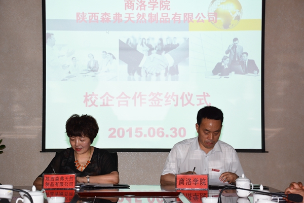 我校學(xué)校辦公室、發(fā)展規(guī)劃與交流合作處、科研處、教務(wù)處、學(xué)生處、校團(tuán)委、生物學(xué)院、經(jīng)管學(xué)院等部門負(fù)責(zé)人,商州區(qū)招商局、科技局、荊腰工業(yè)園區(qū)管委會(huì)以及森弗公司等相關(guān)單位負(fù)責(zé)人參加了協(xié)議簽字儀式。