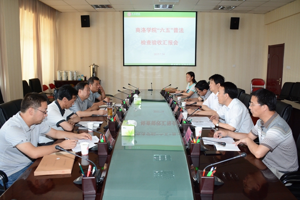 7月14日,由商洛市檢察院副檢察長王農(nóng)業(yè)、市依法治市辦公室副主任王治才一行四人組成的來我校檢查驗收“六五”普法工作。校黨委副書記、“六五”普法工作領(lǐng)導(dǎo)小組副組長彭虎軍,學(xué)校辦公室、黨委宣傳部、思想政治理論課教學(xué)研究部負責(zé)人參加檢查驗收匯報會。