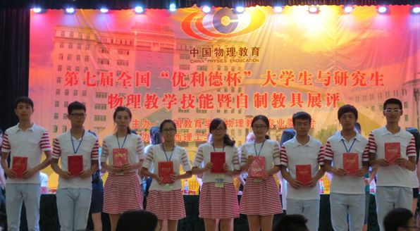 在為期一天半的展示活動中,來自全國各高校的661名選手(本科生583名,研究生78名)參加了教學(xué)技能展示、276項實驗參加了自制教具與設(shè)計實驗展示。我校學(xué)生韓生虎制作的《平拋運動演示儀》,李磊、魏建偉、李云靜等制作的《電與磁的相互作用演示儀》獲得自制教具展評類一等獎,并與華南師范大學(xué)、陜西師范大學(xué)等全國知名院校學(xué)生作品聯(lián)合被推薦進(jìn)行展評;周新凱制作的《滑輪組合演示儀》獲得教具類二等獎;在物理教學(xué)技能展評活動中,我校學(xué)生宋丹獲得一等獎,孫亮獲得二等獎,劉馨、唐習(xí)哲、吳婷、劉玲玲獲得三等獎。