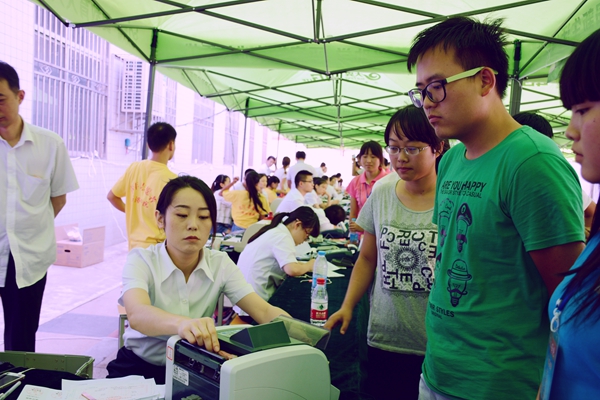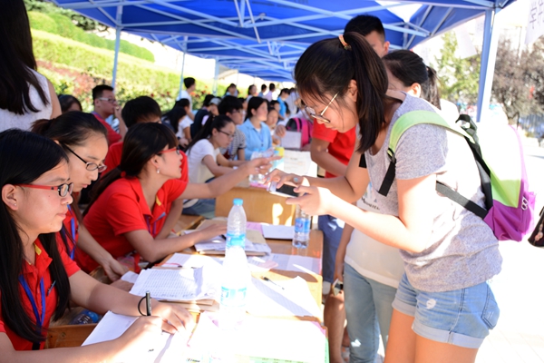 為保證新生順利入學(xué),學(xué)校安全面按排部署,各部門(mén)緊張有序投入工作。為方便外省市新生順利入校,學(xué)校在火車站、汽車站和校門(mén)口等地方分別設(shè)立迎新接待點(diǎn),校車一路暢通,日夜不間歇接送,為新生及家長(zhǎng)們提供便利服務(wù)。校內(nèi)設(shè)立了新生咨詢處、行李寄存處、公安執(zhí)勤處、醫(yī)療服務(wù)處、家長(zhǎng)休息區(qū),還專門(mén)為家境貧困的學(xué)生開(kāi)放“綠色通道”,辦理助學(xué)貸款。路口醒目位置都設(shè)置有迎新指示牌,志愿者們穿梭其中,忙碌地為新生提供各類咨詢和幫助。