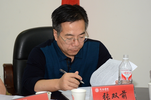 針對我校今后的工作,張新民提出了“加強教師隊伍建設(shè),強化辦學特色,加強對外合作交流,加強信息化建設(shè),加大貧困學生資助力度,加強資金規(guī)劃力度”等6點要求。