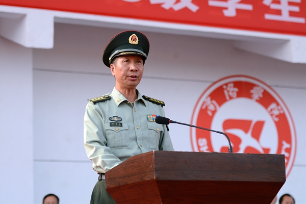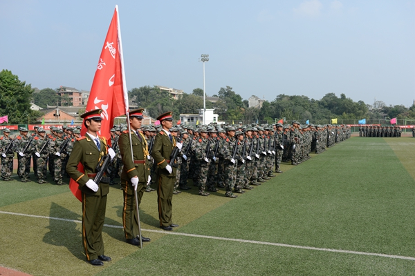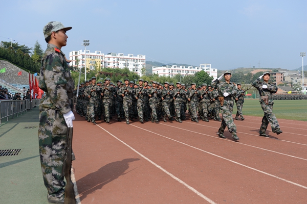 校黨委副書記彭虎軍代表學(xué)校向大力支持、幫助我校軍訓(xùn)工作的解放軍西安政治學(xué)院、西安理工大學(xué)致謝,向承擔(dān)軍訓(xùn)任務(wù)的全體教官致敬,向參加軍訓(xùn)并取得良好成績的軍訓(xùn)團(tuán)體官兵表示親切的慰問和熱烈地祝賀。他在講話中指出,2015級全體同學(xué)以昂揚(yáng)的斗志、刻苦的精神進(jìn)行了隊列隊形訓(xùn)練、整理內(nèi)務(wù)訓(xùn)練、操槍訓(xùn)練、行軍拉練等規(guī)定的訓(xùn)練內(nèi)容,達(dá)到了軍訓(xùn)的預(yù)期目標(biāo);大家在認(rèn)真學(xué)習(xí)國防知識和軍事技能的同時,服從命令、聽從指揮、嚴(yán)守紀(jì)律、尊敬教官,養(yǎng)成了雷厲風(fēng)行的良好作風(fēng),強(qiáng)化了集體榮譽(yù)感。緊張而又精彩的軍訓(xùn)經(jīng)歷為同學(xué)們留下一筆珍貴的人生財富。彭虎軍要求全體新生在今后的學(xué)習(xí)生活中能夠保持和鞏固軍訓(xùn)成果,學(xué)習(xí)和發(fā)揚(yáng)人民解放軍的優(yōu)良傳統(tǒng)和作風(fēng),希望同學(xué)們珍惜時光,不做“低頭族”,要“抬頭看路,埋頭讀書”,努力把自己鍛煉成“理想信念堅定、本領(lǐng)過硬、勇于創(chuàng)新、艱苦奮斗、品德高尚”無愧于時代的英才,為實(shí)現(xiàn)中華民族偉大復(fù)興的中國夢做出自己應(yīng)有的貢獻(xiàn)。