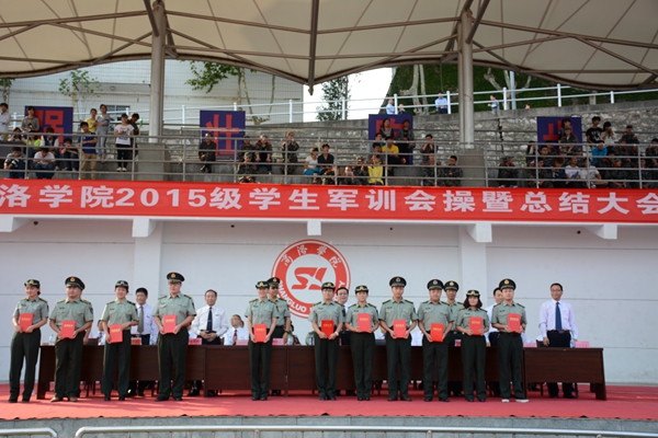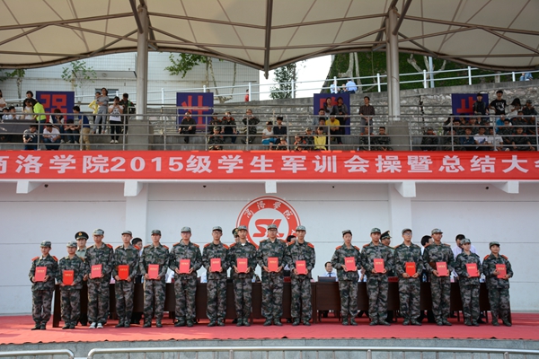 校武裝部部長、軍訓(xùn)團(tuán)政委石啟英宣讀了2015級軍訓(xùn)工作先進(jìn)集體及個人的表彰決定。主席臺上的領(lǐng)導(dǎo)和嘉賓為軍訓(xùn)隊列先進(jìn)集體、軍訓(xùn)內(nèi)務(wù)先進(jìn)集體、軍訓(xùn)工作優(yōu)秀教官、軍訓(xùn)工作先進(jìn)個人及軍訓(xùn)優(yōu)勝標(biāo)兵代表頒發(fā)了獎牌和證書。