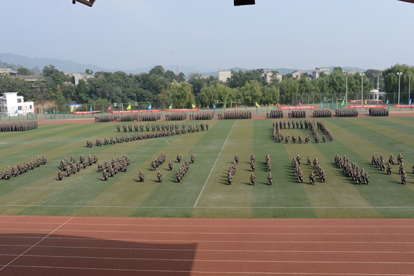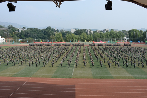 9月21日,我校隆重召開2015級學(xué)生軍訓(xùn)會操暨總結(jié)表彰大會,全體2015級學(xué)生以分列式、刺殺操、花樣隊列和軍體拳表演等形式展示了他們半個月來的軍訓(xùn)成果。校領(lǐng)導(dǎo)張景書、劉建林、王思懷、彭虎軍、范新會、劉寶盈。解放軍西安政治學(xué)院軍事系主任惠拉林大校,2015級學(xué)生軍訓(xùn)團(tuán)團(tuán)長、解放軍西安政治學(xué)院劉京生大校觀看了會操表演并為受表彰的軍訓(xùn)先進(jìn)集體和個人頒獎。解放軍西安政治學(xué)院有關(guān)領(lǐng)導(dǎo),我校各院(部)、各職能部門主要負(fù)責(zé)人,2015級學(xué)生輔導(dǎo)員參加了大會。大會由副校長范新會主持。