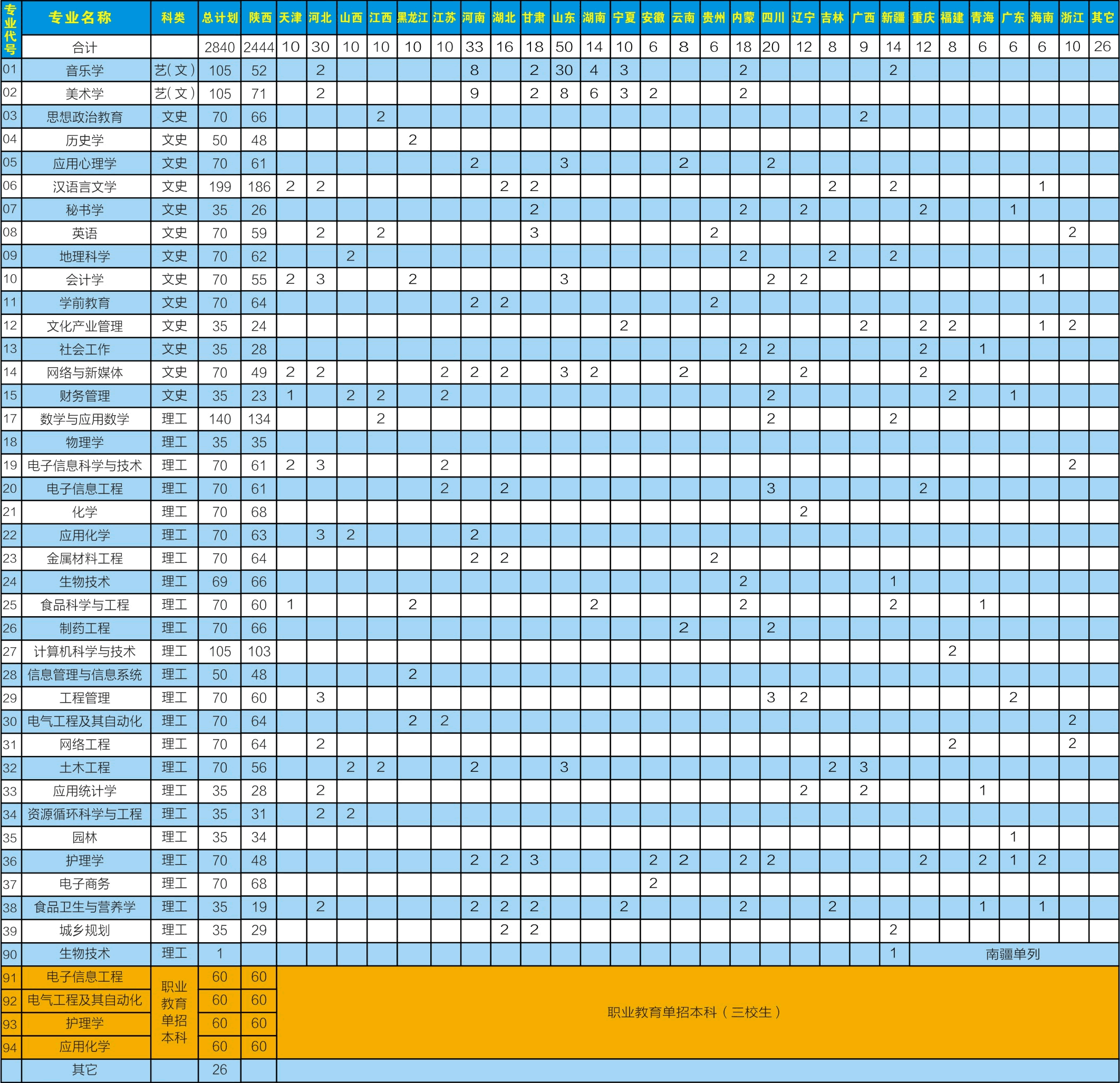 2018年商洛學(xué)院38個(gè)本科專業(yè)面向全國(guó)28個(gè)?。ㄖ陛犑小⒆灾螀^(qū))計(jì)劃錄取2840名優(yōu)秀學(xué)子。