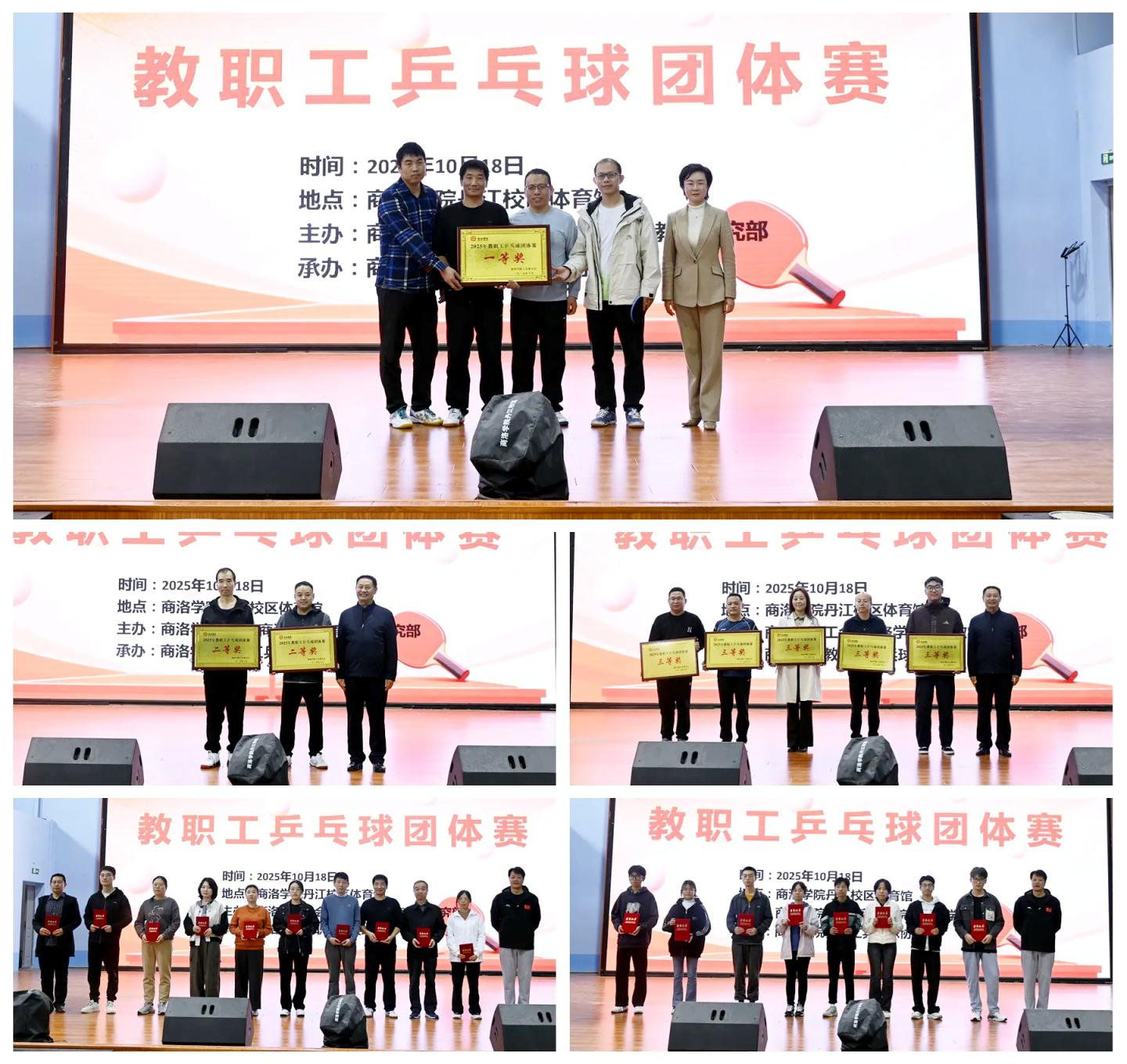 10月18日,我校在丹江校區(qū)體育館舉辦2025年教職工乒乓球團(tuán)體賽,副校長程敏出席活動并為獲獎集體頒獎。校工會、體育教學(xué)研究部主要負(fù)責(zé)人,以及來自學(xué)校各工會分會和附屬小學(xué)的近200名教職工選手參加本次比賽。經(jīng)過多輪激烈角逐,建工學(xué)院代表隊?wèi){借穩(wěn)定發(fā)揮榮獲一等獎,機(jī)關(guān)一、機(jī)關(guān)三代表隊榮獲二等獎,經(jīng)管學(xué)院、人文學(xué)院、化材學(xué)院、健康學(xué)院、數(shù)計學(xué)院代表隊分獲三等獎,齊鋒、楊憲華、何佳佳等16名選手獲評優(yōu)秀運(yùn)動員,劉雅各、王賀拓等8名裁判獲評優(yōu)秀裁判員。
