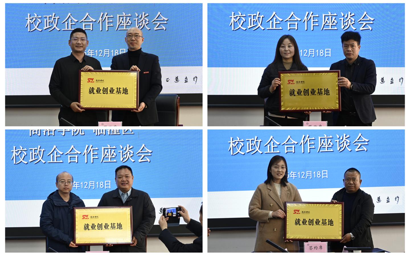在與會(huì)人員見(jiàn)證下,王新軍為企業(yè)代表頒發(fā)了“就業(yè)創(chuàng)業(yè)導(dǎo)師”聘書(shū)。馬克思主義學(xué)院、人文學(xué)院、建工學(xué)院、健康學(xué)院分別與四家臨潼區(qū)企業(yè)簽署了就業(yè)創(chuàng)業(yè)基地協(xié)議并授牌。企業(yè)代表與我校相關(guān)二級(jí)學(xué)院負(fù)責(zé)人圍繞學(xué)生實(shí)習(xí)實(shí)踐、課程共建等內(nèi)容進(jìn)行了深入交流。