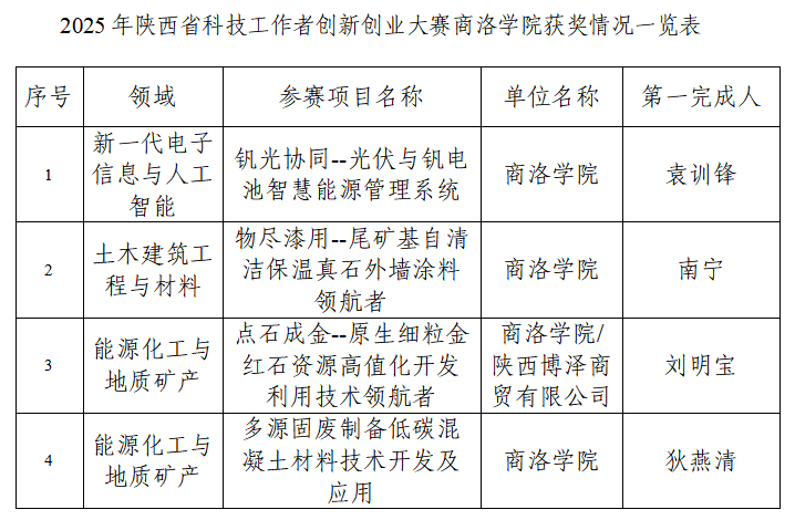 商洛學院4項科技成果獲得2025年陜西省科技工作者創(chuàng)新創(chuàng)業(yè)大賽三等獎