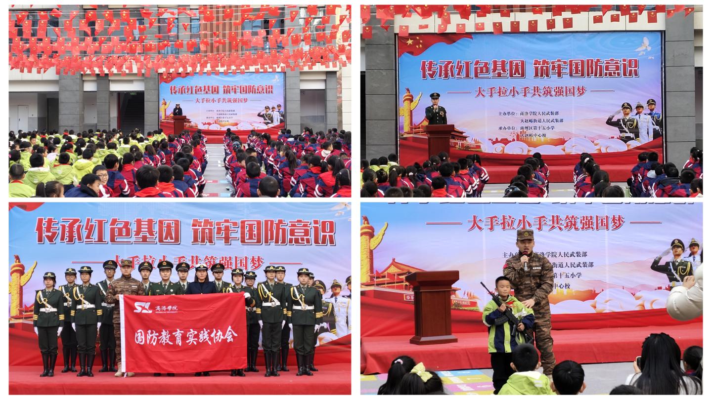 學(xué)校積極拓展國防教育輻射范圍,聯(lián)合商州區(qū)大趙峪街道人民武裝部走進商州區(qū)第十五小學(xué),開展“傳承紅色基因 筑牢國防意識”國防教育活動,通過升旗儀式、軍旅故事分享、戰(zhàn)術(shù)演示及軍事訓(xùn)練體驗等活動,在小學(xué)生心中播下“愛國強軍”的種子,體現(xiàn)高校在服務(wù)地方、推動全民國防教育中的積極作用。
