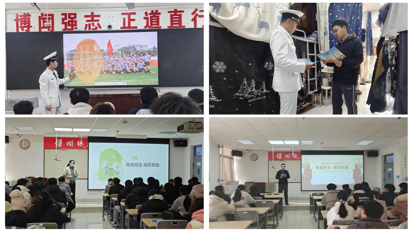 學(xué)校人民武裝部面向全校11個二級學(xué)院開展系列宣講。退役復(fù)學(xué)學(xué)生代表結(jié)合自身戍邊訓(xùn)練經(jīng)歷,生動闡述軍人使命;人民武裝部教師圍繞入伍條件、報名流程、優(yōu)撫政策進行系統(tǒng)講解,幫助學(xué)生明晰參軍發(fā)展的成長前景,引導(dǎo)學(xué)生把個人理想融入強國強軍事業(yè),堅定學(xué)生參軍報國的決心。