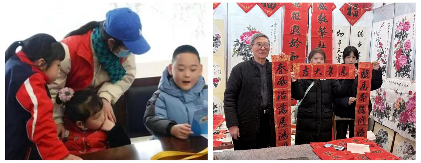 “鄰里守愛(ài)筑夢(mèng)團(tuán)”等團(tuán)隊(duì)的志愿者們走進(jìn)西安市周至縣青化鎮(zhèn)、商州區(qū)百順山莊等敬老院,與老人圍坐閑談,為老人梳頭、包餃子,貼上親手書寫的春聯(lián),用陪伴驅(qū)散冬日的孤寂。在留守兒童家中,隊(duì)員們一對(duì)一輔導(dǎo)學(xué)業(yè),通過(guò)趣味實(shí)驗(yàn)和勵(lì)志故事為孩子們種下夢(mèng)想的種子。在老年大學(xué),“春聯(lián)送?!被顒?dòng)將傳統(tǒng)吉祥語(yǔ)與新時(shí)代家鄉(xiāng)風(fēng)貌融入筆墨,讓傳統(tǒng)文化在老少互動(dòng)中得到傳承,將服務(wù)的溫度延伸到基層的每一個(gè)角落。