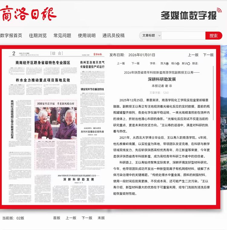 2021年,從西北大學博士畢業(yè)后,王以壽入職商洛學院。4年間,他扎根秦嶺南麓,以實驗室為陣地,帶領(lǐng)團隊攻堅克難,在科研與教學領(lǐng)域雙線發(fā)力,先后斬獲陜西高校優(yōu)秀青年、丹江新星等榮譽,今年更是獲評陜西省青年科技新星,成為高校青年科研工作者中的佼佼者。