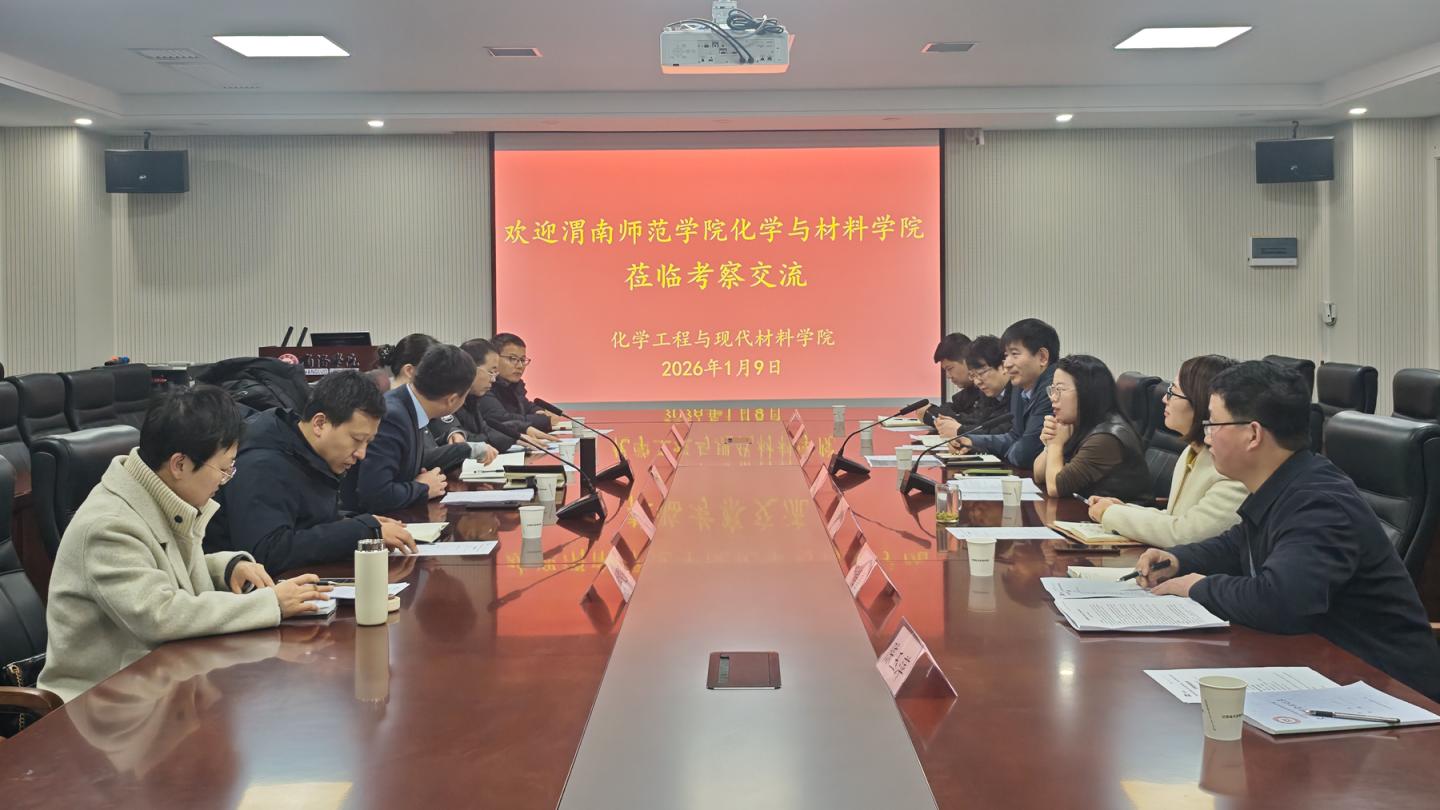 為深化校際合作,推動(dòng)學(xué)科專業(yè)建設(shè)、實(shí)驗(yàn)室發(fā)展及人才培養(yǎng)質(zhì)量提升,1月9 日,渭南師范學(xué)院化學(xué)與材料學(xué)院院長(zhǎng)劉展晴一行6人來(lái)化材學(xué)院開(kāi)展調(diào)研交流。學(xué)院黨政負(fù)責(zé)人、系主任、實(shí)驗(yàn)室中心主任參加會(huì)議,會(huì)議由院長(zhǎng)曹寶月主持。