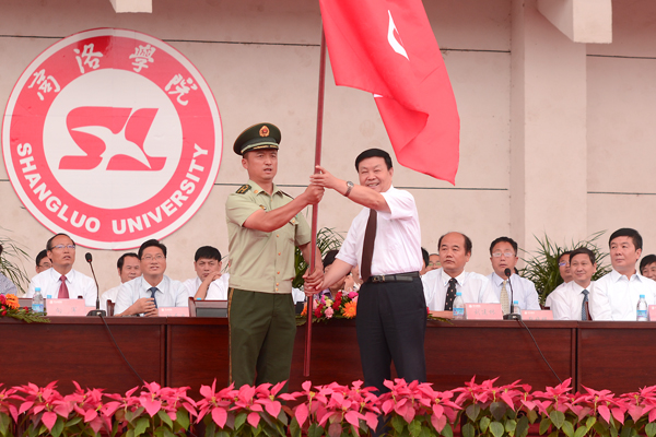 9月7日上午,我校隆重舉行2013級新生開學(xué)典禮暨軍訓(xùn)動員大會。武警商洛支隊(duì)參謀長向軍,商洛供電局副局長趙紅強(qiáng),商洛聯(lián)通副總經(jīng)理陳安民,校領(lǐng)導(dǎo)張景書、劉建林、左曉民、王思懷、陳永莊、魏書堂出席了大會。校黨委書記張景書向承訓(xùn)教官授2013級學(xué)生軍訓(xùn)團(tuán)團(tuán)旗,黨委副書記、校長劉建林做了重要講話。大會由黨委副書記左曉民主持