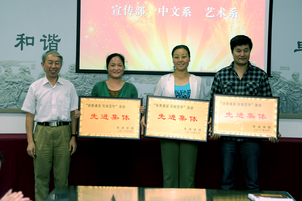 9月11日,學(xué)校召開“說普通話 寫規(guī)范字”先進(jìn)集體、先進(jìn)個人表彰會暨第16屆推廣普通話宣傳周啟動儀式。校黨委副書記左曉民出席會議,就進(jìn)一步做好“說普通話 寫規(guī)范字”活動提出了具體要求,并宣布第16屆推廣普通話宣傳周正式啟動。學(xué)校教務(wù)處、宣傳部、學(xué)生處負(fù)責(zé)人,受表彰的集體代表、教師、普通話測試員和普通話推廣員參加了會議