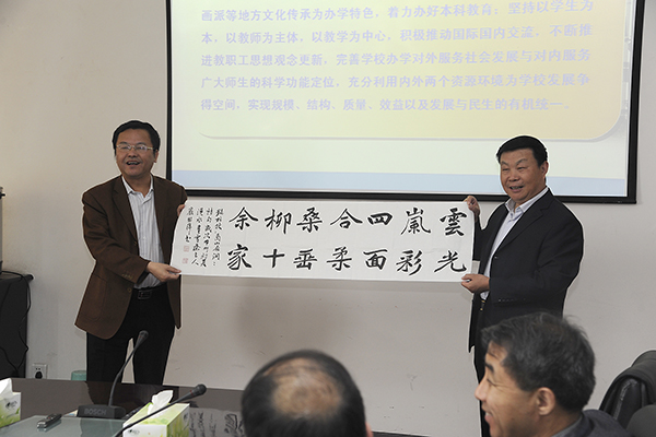 5月16日,陜西理工學(xué)院院長何寧教授來我校訪問交流。訪問期間,何寧一行與校黨委書記張景書、校長劉建林及相關(guān)部門負(fù)責(zé)人進(jìn)行了座談,并為我校教師作了專業(yè)綜合改革報告