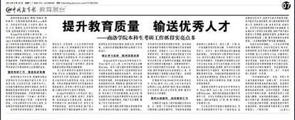 2014年我校本科生考研工作再次取得優(yōu)異成績,實(shí)現(xiàn)了本科畢業(yè)生報(bào)考研究生總數(shù)和上線人數(shù)連續(xù)四年翻倍增長,引來了各界媒體的廣泛關(guān)注。5月20日,《中國教育報(bào)》第七版以《提升教育質(zhì)量 輸送優(yōu)秀人才——商洛學(xué)院本科生考研工作抓得實(shí)亮點(diǎn)多》為題,對(duì)我校本科生考研及學(xué)風(fēng)建設(shè)工作成就做了專題報(bào)道,從重視考研工作、營造良好氛圍,端正學(xué)習(xí)態(tài)度、 提供優(yōu)質(zhì)資源,落實(shí)分類指導(dǎo) 、規(guī)范教學(xué)工作三個(gè)方面進(jìn)行了深入總結(jié)和分析
