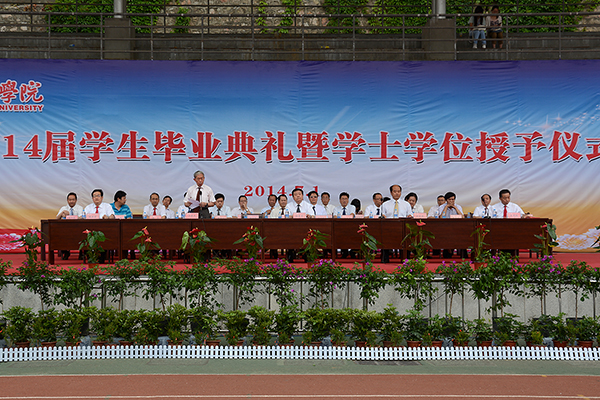 “一朝師生情終生緬于懷,學子闖天下母校候佳音”“累累碩果裝滿行囊,濃濃師恩銘刻心房”,一條條標語成為一道靚麗的風景線,一段段激揚的旋律回蕩耳畔,展現了學校對畢業(yè)生們深切的祝福。7月1日,我校2014屆學生畢業(yè)典禮暨學士學位授予儀式在體育場隆重舉行,2673名畢業(yè)生踏上新的人生征途,奔赴祖國各地建功立業(yè)